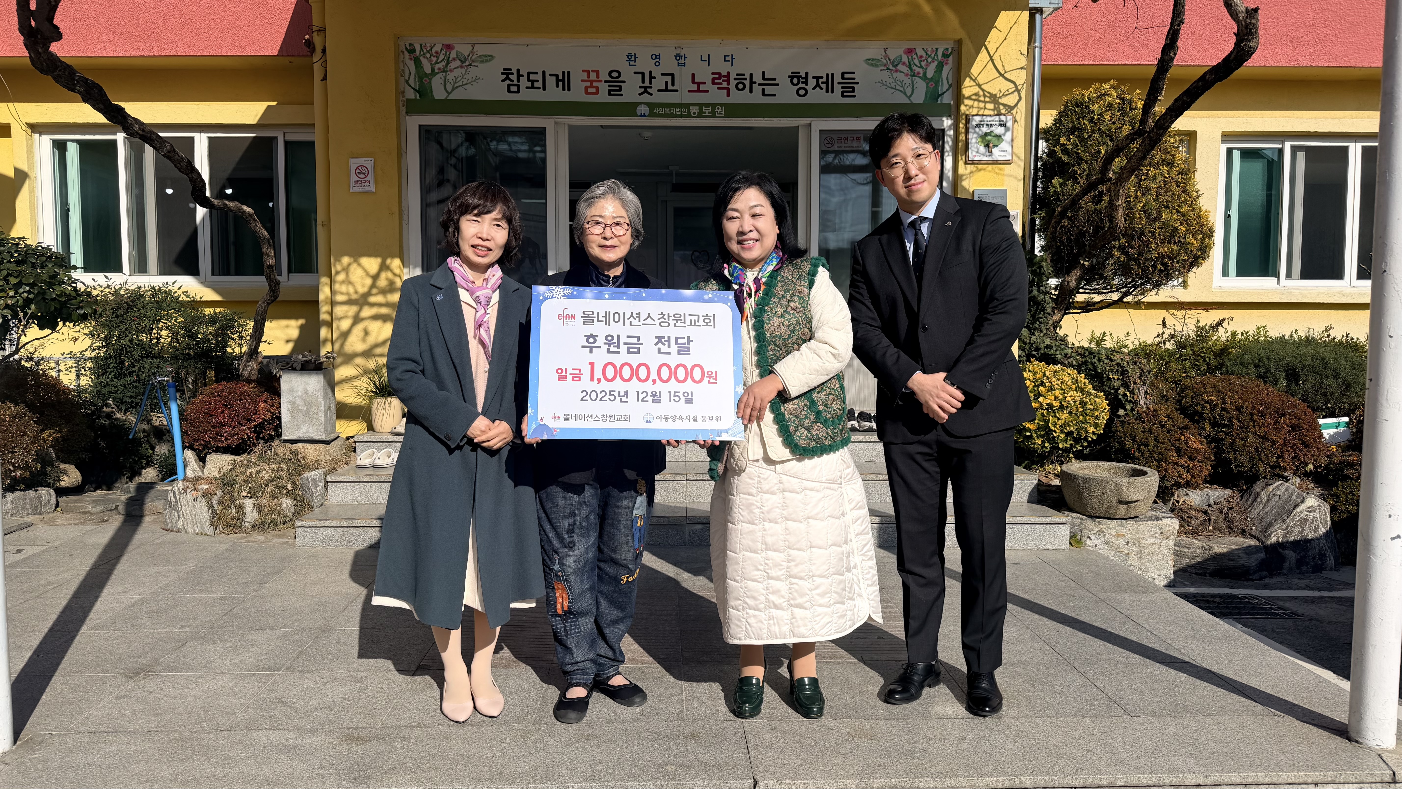 이번 기부는 올네이션스 목자의 기도원의 지교회인 올네이션스 창원교회가 지역 사회와의 연대를 강화하기 위해 마련한 나눔 활동의 일환으로 진행됐다. 전달식에는 올네이션스 창원교회 담임인 전명숙 목사를 비롯한 관계자들이 함께했으며, 경남 창원시에 위치한 아동복지시설 동보원에 직접 방문해 기부금을 전달했다.