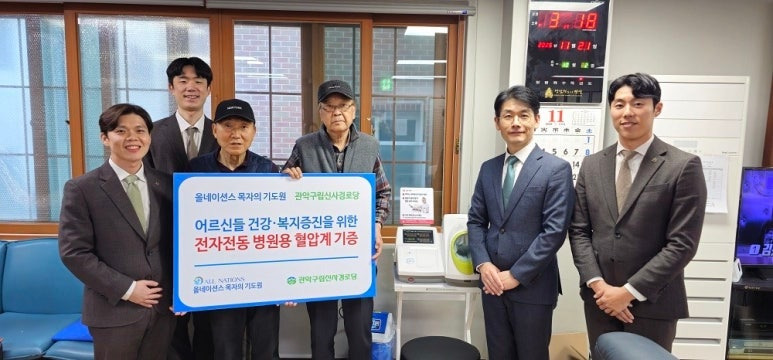 올네이션스 목자의 기도원이 관악구립신사경로당에 전자전동 병원용 혈압계를 기증하며 지역 어르신들의 건강 관리를 돕기 위한 복지 활동을 이어가고 있다. 기증은 11월 21일 진행됐으며, 고혈압 등 만성질환을 조기에 확인할 수 있는 환경을 마련해 경로당 이용 어르신들의 건강 증진과 시설 활성화를 지원하기 위해 추진됐다.