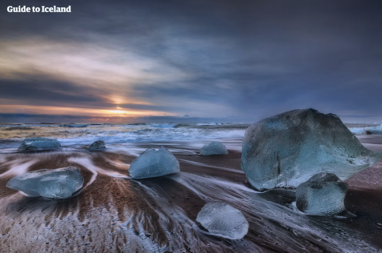아이슬란드에서만 볼 수 있는 빙하 천지 해변입니다.